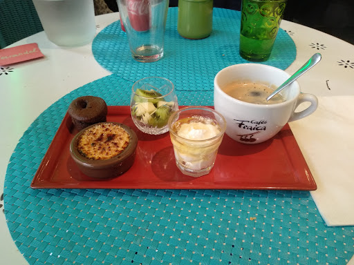 Très bon plat chaud, prix raisonnable et accueil chaleureux. En revanche, le fondant au chocolat était salé. On nous a avoué par la suite qu’effectivement, le pot de sel et de sucre avaient été inversés. Jusqu’ici pas de problème, cela peut arriver. Ce qui n’est pas très commerçant c’est qu’on nous a juste offert une mini crème brûlée (qui fait parti du café gourmand donc pas la même valeur que notre fondant) et en caisse on nous a fait payer le fondant.. Payer un fondant que nous n’avons pas vraiment mangé par leur faute n’est quand même pas bien normal.. C’est dommage pcq à part ça ce aurait pu être une bonne...