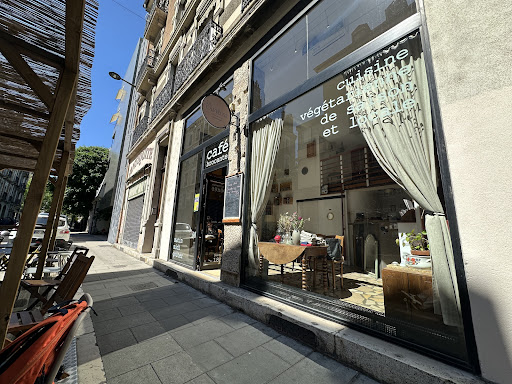 Read moreSuper joli et chouette lieu ! Nous avons déjeuné là-bas ce midi, avec un couple d'amis. Nous avons eu un joli rayon de soleil sur la terrasse calme. Ce que nous avons mangé était super bon - tarte (tomate moutarde avec une pâte maison, salade (lentilles tomates, avec deux vinaigrettes servies à table, au choix) et dessert (un brownies avec amandes et noisettes caramélisés), pour un prix hyper raisonnable! Le principe du lieu est le suivant : café resto et brocante, tout les meubles et la vaisselle sont à vendre, la gérante travaille avec des ressourceries et peut donc se réapprovisionner à volonté. Il y a de belles chaises, tables, coffres, assiettes, verres, c'est trop cool. Je...