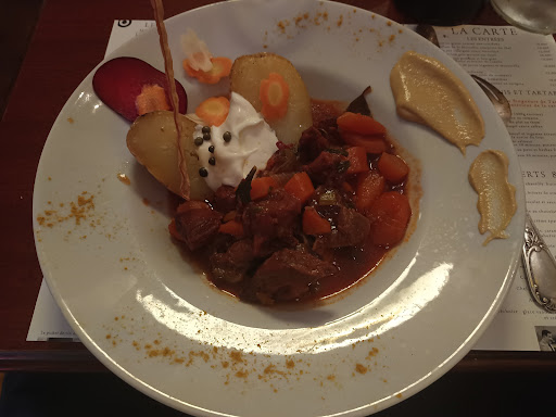 Nous nous sommes rendus pour la 1Ăšre fois dans ce restaurant ce vendredi soir et nous n'avons trouvĂ© aucun point nĂ©gatif! Nous habitons Ă un peu plus de 45min et c Ă©tait un cadeau (ils font aussi les cartes cadeaux âșïž). L'ambiance Ă©tait agrĂ©able, un peu chaud et ils allument les ventilateurs, repas copieux, malgrĂ© une salle et une terrasse blindĂ©es, peu d attente et une serveuse aux petits soins, souriante, agrĂ©able. Et malgrĂ© le gros coup de jus elle restait trĂšs professionnelle et c Ă©tait un atout non nĂ©gligeable je pense! Un serveur Ă©tait prĂ©sent aussi mais nous n avons pas eu Ă faire Ă lui. En revanche tout Ă©tait bien tenu, ficelĂ©, dirigĂ© et vraiment rien Ă dire. Niveau repas par contre nous avions faim et c Ă©tait bien ce qu il fallait avant de venir 𫣠les plats sont copieux et d une grande qualitĂ©! Nous avons rarement mangĂ© aussi bien pour un restaurant convivial comme ça. FĂ©licitations aux cuistots car rien de travers tout Ă©tait plus que parfait. Le combo idĂ©al pour une super soirĂ©e. Ătant venus le soir pas de souci de stationnement et gratuit en plus! Mais la journĂ©e il faut anticiper je pense... Vraiment un lieu convivial entres amis, couples ou famille mais inadaptĂ© aux enfants en bas Ăąge pour ma part. Je reviendrais avec mes ados mais pas plus petits car eux vont adorer l histoire de ce lieu et la bonne bouffe! Nous avons dĂ©jĂ partagĂ© notre soirĂ©e avec des amis fan de bonnes assiettes de qualitĂ© pour revenir! Le bruit Ă©tait inhabituel pour nous mais au final il faisait partie de l ambiance dans la bonne humeur et la joie donc vraiment une superbe adresse en espĂ©rant retrouver le mĂȘme personnel la prochaine fois pour passer une excellente soirĂ©e de nouveau. Encore merci et Ă ...