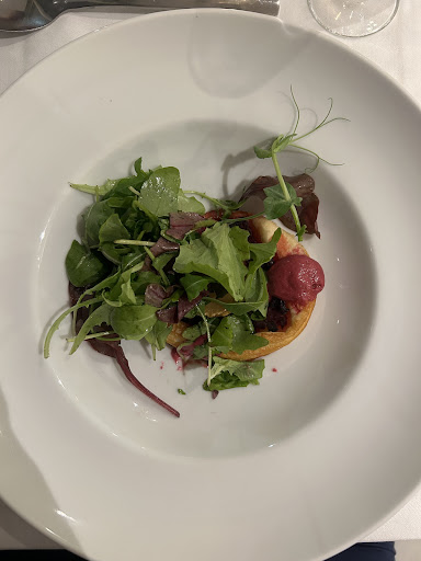 Read moreRepas marquant par sa médiocrité du début à la fin. La même déco "pop corn" sur trois plats de suite. Aucune maitrise des cuissons, des assaisonnements et des températures de service, garnitures écœurantes, présentation déplorable.Le velouté de cèpes servi froid présentait un goût typique "Arôme cèpes" et m'est resté sur l'estomac plus de 12 heures. Un repas à ce prix demande un chef avec un minimum de compétences ! La seule étoile va à la San...