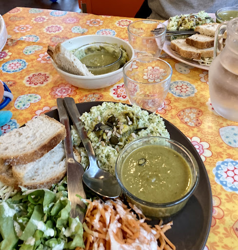 Les plats sont extrêmement cher pour le prix, 14€ (si vous n’êtes pas adhérent) pour un bout de salade, de carottes, de chou, de poireaux et de riz, c’est quand même très cher payé. Et 10€ pour les bébés alors que ma fille n’a pas pu tout mangé, étant donné qu’on lui a servi du riz et une fondu de poireaux alors qu’on avait bien précisé qu’elle ne mangeait pas de morceaux.