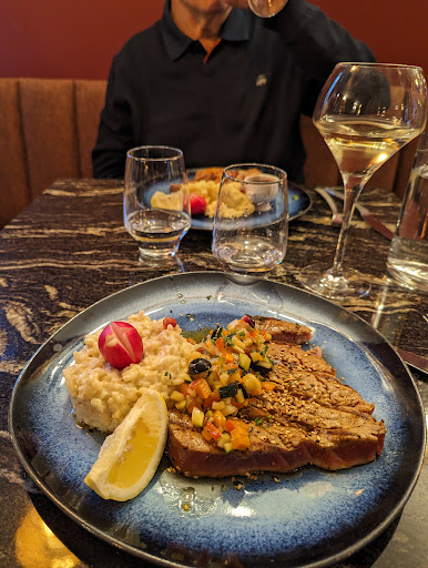 Read moreAccueil sympathique par un personnel assez nombreux (en salle et en cuisine) : nous étions au RDC, donc avec vue sur la cuisine vitrée. On ne s'explique donc pas pourquoi le service a été aussi long (avec quelques plats à peine tièdes). D'autant plus désagréable que nous avons eu froid, soumis aux nombreux et puissants courants d'air dès que la (grande) porte d'entrée s'ouvrait. Rien à dire en revanche sur la qualité des plats. Nous étions un petit groupe et avons rapidement partager l'addition pour aller nous réchauffer à la maison. L'un d'entre nous a gardé la note et nous avons eu la surprise après coup de constater qu'elle comportait des éléments que nous n'avions pas consommés. Un surcoût de 6%. En résumé : s'il y a un peu de monde ne pas être pressé; en hiver éviter les tables du...