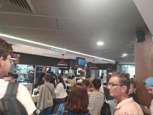 Read moreDepuis le nouveau système de commande par panneau, c'est devenu une catastrophe... quelle que soit l'heure, on fait la queue (version métro) pour commander au panneau, puis la queue pour payer (si vous payez en liquide ou en TR) puis vous allez essayer de vous trouver une place... Aux heures de pointe, cela peut vous prendre dix minutes... Par chance, la commande met environ vingt minutes à arriver... donc vous avez tout le loisir pour attendre... Une table sur deux est bancale donc ça vous donnera le temps de jouer avec votre voisin comment l'équilibrer au mieux... À moins que les gens qui font la queue ne viennent carrément s'assoir sur votre table par manque de place ! Vous pourrez essayer les toilettes pour passer le temps... Vous pourrez vous rendre compte combien le panneau « nettoyées toutes les demi-heures » est une belle arnaque ! Mais soyons sympas quand même : le robinet qui n'était pas fixé (non, ce n'est pas une blague) dans les toilettes hommes depuis dix ans a enfin été réparé ! Quand enfin arrive votre commande, le sandwich est froid, le sunday fondu (dommage qu'on ne puisse pas échanger la chaleur de l'un pour la fraîcheur de l'autre) et il manquera inévitablement soit la paille, soit la sauce, soit carrément un sandwich... Enfin, c'est un bonheur que de marcher sur des frites écrasées et de d'installer sur une table non nettoyée... Essayez... Il faut le voir...