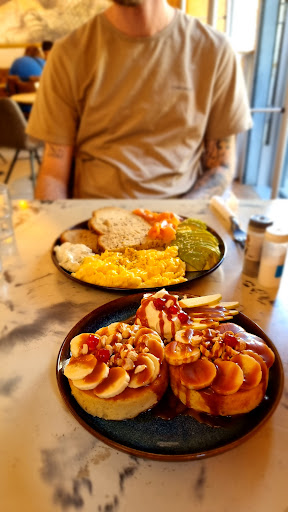 Read moreRead moreNous sommes venus deux fois dans ce brunch afin de (étonnement) bruncher ! La première fois tout s'est bien passé, mais malheureusement la deuxième fois il y a eu plein de petits soucis. Il y avait beaucoup de monde et une bonne file d'attente et avec le principe de laisser les cartes du menu au comptoir, c'était la galère pour tout le monde de chercher un menu. Ensuite comme il allait peut-être pleuvoir, la dame au comptoir nous a limite engueulé car nous n'avions pas déjà prévu où nous asseoir avant de commander. Désolé mais il y avait au moins 4 personnes dans la queue devant nous donc on ne pouvait pas anticiper quel tables ils allaient prendre et lesquels allaient nous rester :( Après les plats étaient bons, mais nous étions dehors et apperement il y avait beaucoup de monde à l'intérieur et le bruit dérangeait des personnes. Un groupe de personne et donc venu me voir pour me demander si ils pouvaient prendre notre place comme on finissait de manger, à ce quoi j'ai répondu oui, et voyant que je finissais trop lentement à leur goût, le petit groupe m'a clairement montré qu'ils étaient saoulés et ne m'a même pas remercié alors que je leur laissais ma place :( je sais que vous n'êtes pas responsables de la politesse de vos clients, mais le fait qu'ils veuillent changer de table en étant aussi énervés montre qu'il y a peut être un problème quand il y a trop de monde. Les plats sont un peu cher, surtout les smoothies même si ils...