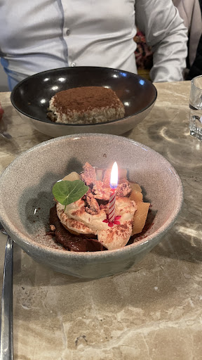 Read moreTrĂšs bonne expĂ©rience Ă Montebello ! Ce fĂ»t un petit peu rapide pour nous car nous sommes arrivĂ©s au moment oĂč les cuisines fermaient. Nous avons donc rapidement commandĂ© entrĂ©e + plats et avons Ă©tĂ© servis trĂšs rapidement. En apĂ©ritif nous avons goĂ»tĂ© le sirop Ă la mandarine, trĂšs bon !! Nous avons pris la burrata en entrĂ©e pour 2, elle Ă©tait excellente ! Super fraĂźche et avec les figues c'Ă©tait un dĂ©lice. Le pain amenĂ© avec la burrata Ă©tait trĂšs bon aussi, j'ai rarement trouvĂ© un pain aussi bon ! Plats et entrĂ©e ont Ă©tĂ© amenĂ©s quasiment en mĂȘme temps donc nous avons pu profiter de tout en mĂȘme temps. Le plat modena avec l'oeuf parfait, les champignons et le jambon est trĂšs bon. Le plat est copieux, et joliment prĂ©sentĂ© dans la marmite. Petit regret car la serveuse ne nous a pas apportĂ© le petit pot de parmesan Ă ajouter sois mĂȘme, vu l'heure a laquelle nous sommes arrivĂ©s, mĂȘme en ayant appelĂ© au prĂ©alable au tĂ©lĂ©phone pour ĂȘtre sur que ça ne dĂ©rangeait pas trop, nous n'avons pas osĂ© demander le parmesan. Le tiramisu (1 pour 2) Ă©tait trĂšs bon, assez aĂ©rien, parfait aprĂšs un plat copieux comme celui la. Nous avons passĂ© un bon repas, sur la terrasse qui est trĂšs sympa, la dĂ©co intĂ©rieur est trĂšs jolie aussi. Nous reviendrons tester le reste de la carte, plus tĂŽt la...