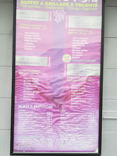 Read moreAvant même de rentrer, on a déjà des doutes. La devanture ne donne pas très envie. Mais on est dimanche soir, loin de la maison, et à part la grande enseigne de fast food américaine à côté, c’est désert. Donc on tente. L’avantage en entrant, c’est que l’on voit tout de suite le buffet avant même d’être installé. On sait donc ce qui nous attend. 19h45, des plats à moitié vides en grande partie, et peu de choix. L’accueil est cordiale, on nous installe, on regarde la carte, et la…. 21,90€ le buffet les week-ends.!!Perso j’aime bien prendre une petite bière pour faire glisser tout ça, donc on sait déjà que l’on va dépenser 25 balles en sachant que l’on a déjà aperçu le buffet à moitié vide… on se demande donc ce que l’on va pouvoir manger pour rentabiliser au maximum les 21,90€ du menu. Aller c’est parti on se lance. J’évite les suschis (aliment à risque et j’ai des doutes sur la propreté), les fritures, c’est bof, les plats cuisinés, c’est archi bof, mais, brochettes de bœuf en grillade, c’est pas mal. Quant aux desserts, et bien… c’est archi bof aussi. Niveau hygiène, j’ai mis mon radar en alerte pendant la cuisson de mes brochettes de bœuf. On voit toute la cuisine. Alors je n’ai pas vu d’insectes courir le long des plinthes, mais l’ensemble ne paraissait pas très clean quand même et c’était sérieusement le foutoir. Alors je sais, ce n’est pas la même culture. Mais en France, on a des règles d’hygiène à respecter. Et puis nous avons les intestins fragiles nous les français. Trêve de plaisanterie, si vous passez dans la région, attendez d’être sur Chambéry ou Grenoble pour vous restaurer. Sinon vous perdrez 1h de votre temps et de l’argent pour un restaurant plus...