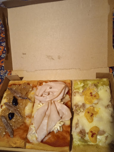 Approfittate della gente ignorante del quartiere per gonfiare i vostri prezzi: la pasta della pizza non vale il prezzo! Le concept : une part de pizza boulangère à réchauffer chez vous. Gastronomique, comme si cela était possible… Heureusement pour les napolitains, ici, la pizza n'existe pas : il s'agit comme en boulangerie de vendre des parts de pâte à pain rectangulaires froides découpés en petits rectangles. Les ingrédients ajoutés, peut-être de qualité y sont posés au millième de gramme sûr une pate à pain épaisse et sans intérêt mais qui devient croustillante à la réchauffe et qui emporte tout… Cela est vendu plus de cinq euros… Si vous critiquez, le prix et la qualité, vous vous faites insulter en italien avec accent français sur le mode : il faut plus de 48 heures pour faire une pizza d'où le prix ! Bref une arnaque qui ne profite ni au levain, ni aux...