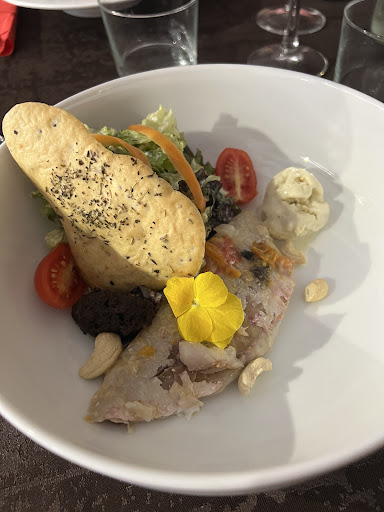 Nous avons mis 15 jours avant d’écrire cet avis pour essayer d’être le plus objectifs possible …. Tout d’abord nous saluons la force de caractère du Chef de ce restaurant pour son parcours hors norme et très touchant…. Étant moi même une survivante d’une grave maladie je ne peux qu’admirer son combat pour retrouver une vie « normale » et accomplir son projet hors norme. Maintenant pour parler de la cuisine nous avons été satisfait de nos entrées mais très déçus de nos plats et du dessert : ris de veau surcuit et servi dans une crème à peine voir pas travaillée ce n’était pas une sauce donc, les accompagnements variés étaient tous froids ; le poisson était très fade et les accompagnements froids également, de plus les deux plats manquaient cruellement d’assaisonnement. Quand au dessert le macaron était vraiment trop cuits …. Les amuses bouches et la bouchée de fin de repas étaient bonnes et appréciables. Nous reconnaissons en outre que l’offre associée à la box que nous avons eu est très très honnête car elle comprends entrée plat dessert café (hors supplément). Nous ne nous attendions pas à tout ça. Cependant à notre accueil le chef nous a clairement dit que ce soir là il n’avait que des réservations avec des box et qu’il allait faire avec, sous entendu, qu’il n’allait pas gagner grand chose, et cela nous a mis mal à l’aise pour être franc. Le serveur bien qu’arrivé en retard était très sympathique ! Pour conclure la cuisine ne nous a globalement pas plu et l’accueil nous a mis mal à l’aise. Expérience peu...