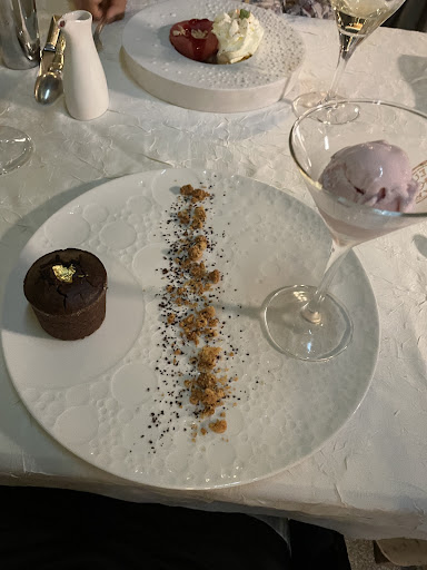 Read moreNos papilles s’en souviennent encore ! Deux menus, l’un Gourmet, l’autre Gourmette. Les deux avec de belles saveurs autour du caviar et de la truffe, l’un ou l’autre mis à l’honneur presque tout au long des plats. De belles assiettes, en quantité raisonnable, mais plutôt sur la frugalité que l’exubérance. Le menu est équilibré. Les poissons sont à l’honneur dans le menu Gourmette et un mix poisson et viande dans le menu Gourmet. A deux, prenez-en chacun un est partagez… Le dessert est bon sans être de l’ordre de la révélation gustative. La pêche Melba était dure. Le fondant au chocolat très bon mais pas le meilleur de mes dernières découvertes. Quelques suggestions : mieux déveiner le foie gras et une polenta un peu plus moelleuse accompagnée de quelques légumes. La carte des vins est fournie mais le rapport qualité/prix n’est, selon moi, pas au rendez-vous. Si vous voulez une bouteille de plus de quatre ans d’âge, le prix grimpe rapidement du coté des 100€ voire plus. En comparaison nous avons dégusté un rouge succulent de 2000 chez MadaM a moins de 100€… Le service était très bien. Bon rythme tout au long du dîner sans trop d’attente sauf pour le dessert. Les serveurs sont sympathiques sans être affables. En rapport à MadaM, difficile de mettre plus d’étoiles, un menu plus équilibré mais moins de découvertes et un rapport qualité/prix moins bon selon moi. Un service aussi en deçà de MadaM, chez qui les serveurs étaient particulièrement sympathiques quand nous y sommes allés. Une table à aller découvrir les yeux fermés si vous n’y êtes...