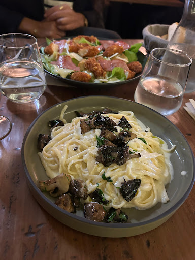 Read moreLa promesse était trop belle. 5 personnes. Nos entrées sont arrivées apres 1h30 d'attente (resa pour midi) Un OS a moelle arrivé cru (véritable risque sanitaire) et sans AUCUN assaisonnement retour cuisine, il est revenu tellement cuit qu'il n'y avait plus rien a manger. Une salade césar avec bacon (soit, c'est notre faute de ne pas avoir lue plus attentivement la carte, mais pour nous une césar c'est sans bacon), retour cuisine, elle est revenu identique 1min plus tard mais sans bacon (mon épouse est musulmane et ca se voit!!) si nous avions voulu la meme salade on aurait enlevé le bacon nous meme!! Foie gras immangeable car bcp trop oxydé. Rossini dur, sans aucun gout ni assaisonnement (viande et foie gras frais) avec une cuisson absolument pas maitrisée. Une vue direct sur la cuisine ou un "cuisinier" avec une coupe de cheveux hirsute et longue (sans charlotte) passait son temps a passer la main de ses cheveux et se grattait le nez ouvertement (un scandale!) . Point positif les pates sur la meule de parmesan étaient bonne et gouteuse. La manager et son équipe en salle sympa et conciliante (quoi que surement débordées et novice) Nous ne sommes peut etre pas des clients facile car pour certains d'entre nous de la profession. Mais je pense que quand on a une carte aussi remplie de belles promesse il faut une équipe capable de transformer l'essai en une expérience...