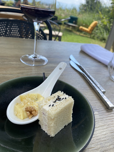 Read moreBonjour à tous, voici notre expérience du jour... Nous avons voulu fêter l anniversaire de mon épouse en famille dans un cadre chic et agréable... Pour cette partie, la mission a été amplement accomplie... D ou les 2 étoiles... Par contre nous avons été surpris puis dérangé par 2 choses : la première, cela arrive certe mais dans un restaurant gastro, cela est rédhibitoire... C est que la cuisson à cœur du lapin était crue... NB : Notez que le plat est composé d'un roulé extérieur Plutôt gras et à l'intérieur dun rognon et enfin d'une partie blanche du lapin (un tiers environ). Lorsque nous avons informé le serveur du problème de cuisson, sa réponse a été simplement :" ah... Effectivement..." ce qui nous a dérangé ç est qu'il n'y ai pas eut d'excuses (je ne parle même pas d une proposition de remplacement...) 1ere action surprenante et négative... La seconde action est venu du second serveur qui avait l'air visiblement tendu car il froncait les sourcil en permanence, lorsqu'il débarrassait les couverts, il lâchait les couverts dans les assiettes d'une façon telle que cela à réveillé notre petit bout qui dormait... À 5metres à l'ombre... On aurait cru un débarrassage de couvert dans une cantine de mon enfance... Croyez moi j'exagère a peine... Cela est le second point dérangeant... Ce qui est bizarre ç est que les 2 serveurs parlaient plutôt poliment '... Mais il y avait une froideur et un manque d'humanisme dans leurs attitude respective... Cela rejoint certains commentaires que j'avais déjà lu... Cela est dommage et in fine il vaut mieux être avertis pour ne pas s'attendre à des attentions bienveillantes ou délicates... Pour finir, Le gâteau d'anniversaire était bon, les ravioles excellentes... Dommage que la touche humaine et commerciale (et le lapin) n'ai pas été au rdv... Consequence: Pas de pourboires ni de remerciements de ma part car l antipathie était dure à digérer... Plus que le lapin :) .. J'espère que leurs attitudes et sens du commerce s amélioreront pour les prochains clients... Un simple "veuillez nous excuser pour le désagrément" aurait changé notre ressenti... Dommage... La repas de bapteme prévu initialement la bas se déroulera bien évidemment ailleurs. Prenez...