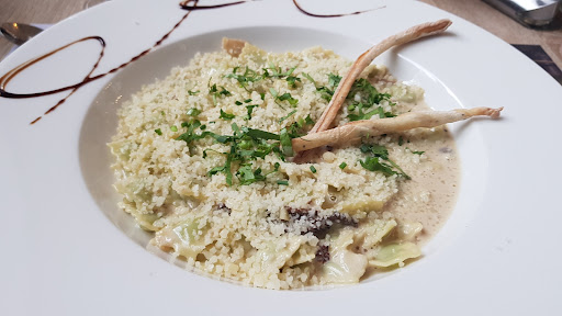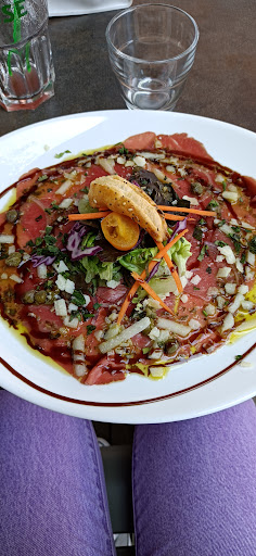 Read moreDeuxième expérience dans ce restaurant tout d’abord réservation au téléphone la musique tellement forte que même la serveuse ne m’entendait pas, accueil correct, je commande un Monaco bien crémeux on me sert un verre sans mousse avec une limonade en bouteille plastique et une bière bas de gamme 5€ quand même, avec une tapenade qui sentait tres fort l’anchois et des morceaux de pains tellement mal taillé bref entrée et plat du jour une portion de quiche aux poireaux ridicule tiède et pas cuite , le plat duo de diots jus aux cèpes que dire cèpes inexistant diots secs une polenta avec des grumeaux j’ai donc annuler le dessert car au vu des plats servis j’ai préféré abrégé les souffrances. Ma femme a pris une salade à 15€ très médiocre que dire le rapport qualité prix n’y est pas la cuisine sans goût ni amour et lorsque j’ai demandé à la serveuse si elle était là patronne elle me rétorque je n’ai pas une tête de patronne je m’en doute mais j’aurai aimé la voir afin de lui faire part de notre mauvaise expérience bref comme disait bocuse( les cuisiniers devraient goûter leur cuisine on mangerait mieux c’est sur) un restaurant sans son patron c’est un navire sans capitaine et là il n’y en avait pas, en plus nous n’étions que 9 couverts ceci...