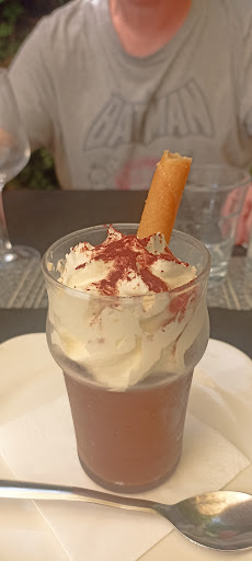 Read moreAccueil très agréable Un service très rapide peut-être un petit peu trop. Une entrée froide très agréable velouté de poivrons avec crème fraîche intérieur malheureusement un petit peu trop salé je pense qu'une petite pointe de curry à l'intérieur ont été agréable à cela mon épouse n'ayant pas commandé d'entrée elle s'est vu quand même offrir une petite salade verte. La formule à 22,50 que nous avons pris était basé sur entrée plat ou plat dessert. Rumsteak avec une cuisson parfaite accompagné d'un gratin dauphinois et d'une tomate provençale, tomate qui aurait mérité pour qu'elle soit provençale de l'huile d'olives et d'herbes de Provence au lieu de n'avoir que de la chapelure dessus. Pour ma part andouillette gratin dauphinois tomates ( provençale ). La seule difficulté existante dans l'assiette était une sauce moutarde pour moi ou malheureusement le fait d'avoir très peu de moutarde avec de la crème délayer ou de la crème liquide rends cette sauce d'accompagnement insipide. Je pensais que ce n'était qu'un détail mais la sauce bleue du Vercors qui accompagnait le rumsteak de mon épouse n'a pas pu relever le niveau , confirmer malheureusement par des personnes qui m'entourent en signifiant une sauce trop liquide et non parfumée. Fin de repas avec une mousse au chocolat surplombé de crème chantilly dommage . Repas accompagné d'un rosé très agréable à boire malgré qu'il soit dans un seau et dans une bouteille qui manquait un peu de fraîcheur. À cela une bonne adresse avec un petit final loupé car lors de mon règlement si je n'avais pas regardé la note j'aurais dû payer le dessert la fameuse mousse au chocolat qui était comprise dans le menu. Détails relevé et remboursé directement par la direction. Je recommande quand même malgré ces petits défauts cet établissement avec une terrasse très agréable une ambiance dynamique part...