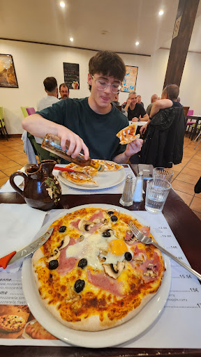 Read moreRien à reprocher aux jeunes qui font le service : ils sont sympas, souriants, courent pas mal (il faut traverser la petite rue pour servir une des deux terrasses) d'où la note 2 étoiles. Mais un gros reproche sur le temps d'attente : nous étions deux, avons commandé des pizzas "simples" qui ont mis plus d'une heure à arriver. Et cerise sur le gâteau, il y en avait une qui avait vraiment beaucoup trop cuite (bordures brûlées immangeables mais aussi la partie centrale était bien noire); ne voulant pas encore perdre une heure à en réclamer une autre (car franchement, cela ne méritait pas d'être servi), nous avons juste fait la remarque aux serveurs. Bien entendu, quand on a payé, la personne à la caisse s'est bien gardée de nous demander si tout s'était bien passé (ce qui se fait en général). Conclusion : nous ne mettrons plus jamais les pieds à cette adresse sachant que nous venons régulièrement...
