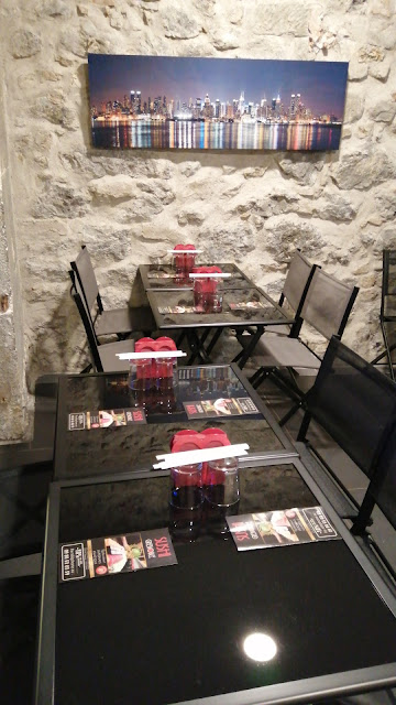 Lovely service! We shared the ‘sushi à partager’ plate and it was perfect for two people. The salmon sashimi in particular was delicious. Lots of their rolls are ‘salad roll’ style and use rice paper on the outside instead of nori and they were very nice. There are fans indoors and it is cooler than the...