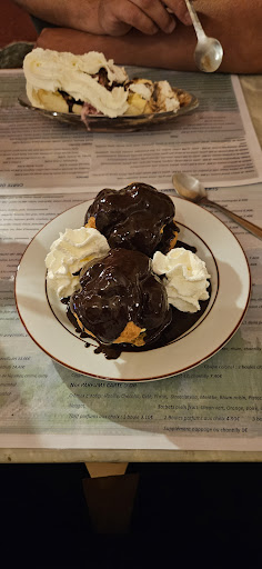 Read moreService poli mais pas très convivial. Déco un peu vieillotte. Au niveau qualité, les pizzas ne sont pas à mon goût, la pâte est sèche et les garnitures premier prix. D'ailleurs, j'ai beaucoup aimé la cuisinière qui descend chercher de la marchandise dans la réserve (située dans la salle du bas) et qui la planque dans un sac plastique pour que les clients ne voient pas ce que c'est... Enfin, et c'est ce qui explique la note de 1 étoile, le dessert "MAISON" que j'ai choisi est tout sauf maison ! Mettre le fondant au chocolat industriel au micro ondes ne suffit pas pour dire que c'est "maison". Contentez-vous de marquer "desserts" et au moins on sait à quoi s'attendre... De plus, le fondant au chocolat et sa crème anglaise est servi sans crème...