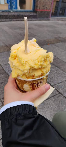 Read moreExcellente glace ou plutôt sorbet dégusté chez le glacier Adam. Une vraie pépite découverte par hasard. Équipe très aimable et souriante, lieu charmant. Rapport qualité prix au top du top et plus que justifié. J'ai payé 2 boules 4€. Les glaces sont artisanales et ont une saveur incroyable en bouche, cela se sent que c'est du fruits et non de l'arôme. Comment vous dire que j'ai dégusté un parfum pistache où... le goût d'une pistache n'avait rien d'un arôme chimique, rien à voir avec ce que l'on peut trouver dans les rayons du supermarché où dans certains restaurants - le jour et la nuit, ici c'était une explosion de saveurs sur mes papilles, de même pour la couleur : oubliez le vert synthétique et admirer une belle couleur naturelle. De plus, les parfums suivent les saisons c'est donc un gros point positif qui s'ajoute. Et enfin, comme il est possible de le constater sur la photo : les glaces sont vraiment généreuses ! Gros coup de coeur pour ce lieu, allez y les yeux fermés. Vivement l'été prochain pour découvrir les...