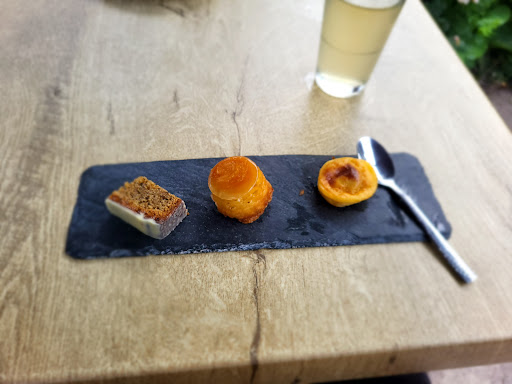 Small cafe alongside the abbey. Well worth a stop, we had the cake of the day (lemon) and the local Breton speciality (a sort of clafoutis cake with prunes).
