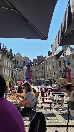 We stopped for lunch on a day visit to Guingamp, no reservation. We were shown a nice table by the busy, but very friendly waitress. The menu was simple, but had a good variety, we chose the bugers, and the Plat du jour. Both these dishes were very tasty and great portion sizes. We finished the meal off with a Cafe Gourmand pudding; a selection of small desserts and a coffee. Great place for a lunch in the beautiful town square (that is a triangle...