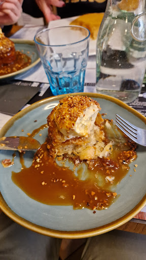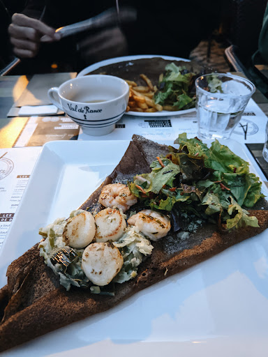 Je ne mets que 4 étoiles parce que malheureusement je n'ai pas trop aimé ma galette. J'en ai pris une avec des noix de St Jacques et de la fondue de poireaux mais j'ai trouvé que tout était assez fade. Les St Jacques manquaient de beurre salé et les poireaux n'étaient pas assez salés. La galette en elle-même était par contre bonne ! Mes collègues m'ont dit que la saucisse fumée aux algues n'avait pas vraiment le goût d'algue et que c'était dommage, mais apparemment les galettes plus classiques et les frites étaient bonnes !