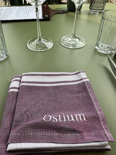 Concernant la salle de restaurant, notre table était bien entre une cave à vin sous vitrine et une autre table de 2 personnes, qui ne donne en aucun cas sur les cuisines, le Chef ou ses équipes, si c'est bien du restaurant OSTIUM dont nous parlons.
