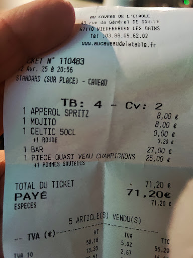 Read moreI would guess a family run business. Good service and reasonable prices. The cheese on the tarte flambee was just right. My seafood salad was full of delicious St Jacques/scallops and the Baba au Rhum was not too rum but you could...