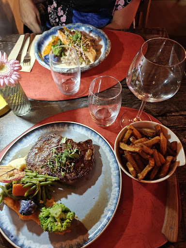 Read moreCe fût une première dans ce restaurant où j'ai trouvé la viande incroyablement bonne jusqu'à goûter un morceau de gras au goût vraiment atroce. Sur le moment j'ai simplement penser ne pas aimer cette partie de la viande mais en rentrant chez moi j'ai été prise de crampes et j'ai été malade à en vomir toute la nuit. J'imagine ne pas avoir eu de chance car mon amie avec qui j'ai mangé a adoré et a très bien digéré son plat. A part cela, tout était excellent, des frites maison aux petits légumes et au goût exquis de la viande. Le Chef a l'air passionné et propose des produits de qualité. Les prix sont élevés mais j'imagine que cela correspond à l'économie actuelle et au coût des matières premières, pas pour toutes les bourses en tout cas. Il y a un coin cosy et un coin lounge dans le restaurant, et nous étions dans le coin cosy qui malheureusement s'est avéré être très bruyant plus la salle se remplissait. Notre serveuse était agréable et nous avons eu très peu d'attente pour nos boissons et nos plats. Globalement nous avons passé un excellent moment et nous sommes régalés. Si je n'avais pas été malade j'y serai sûrement retournée c'est dommage. Merci quand même pour cette expérience gustative car...