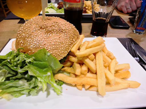 Read moreWir waren das erste Mal hier und hatten online für 18 Uhr einen Tisch für 4 Personen reserviert. Wir wurden freundlich begrüßt und zu einem eingedeckten Tisch geführt. Der Gastraum ist groß, bei unserer Ankunft noch leer, aber innerhalb der nächsten 2 Stunden war jeder Tisch besetzt. Die Speisekarte ist auf französisch, wir hatten vorab zu Hause schon mal übersetzt und uns informiert. Eine freundliche Kellnerin nahm unsere Bestellung auf, wir entschieden uns für Classic Burger mit Pommes und für Cordon Bleu auch mit Pommes frites. Die Wartezeit war angemessen, das Essen schmeckte sehr gut. Zum Abschluss gab es noch etwas Süsses, Creme Brulee, ein Schokotörtchen mit flüssigem Kern und Vanilleeis und Mousse au Chocolat, sehr lecker. Wir verständigten uns auf französisch und deutsch. Die Preise sind angemessen. Es war bestimmt nicht der letzte...