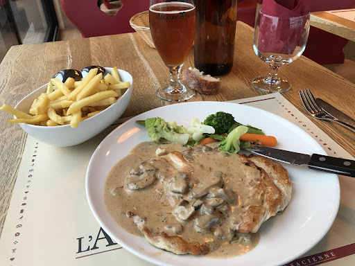 Read more4 Ă©toiles MAIS .... attention !! Ce restaurant a tout pour plaire, une belle salle, une carte plutĂŽt garnie avec de bonnes choses, au tarif correct. Les plats sont bien cuisinĂ©s aucun soucis lĂ dessus. Attention plusieurs plats (3 ou 4) nĂ©cessitent 15-20 minutes dâattente mais câest indiquĂ© sur la carte. En fait la seule chose qui mâa gĂȘnĂ©e dans ce restaurant, ce que Ă peine vous ĂȘtes assis, peut ĂȘtre 10 secondes aprĂšs on vous demande CE QUE vous voulez boire. Et non pas SI VOUS VOULEZ boire quelque chose, et ça avant mĂȘme dâavoir la carte en main. Et ça ne dĂ©pend pas de la serveuse, ils le font tous ! Un soir on mâa fais le coup alors mĂȘme que je nâĂ©tais pas assis. Messages au personnel : arrĂȘte de sauter sur le client comme ça ! Un restaurant est un moment de dĂ©tente, si on a envie de boire quelque chose on vous le dit ! Bref, ceci est dâautant plus Ă©nervant que deux soir de suite je suis parti sans prendre de dessert parce que cela faisait au moins 15 minutes que jâavais terminĂ© mon plat et que personne ne venait dĂ©barrasser... donc câest too much au dĂ©but et too less aprĂšs...