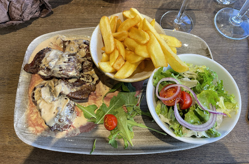 L’un des plats servis (onglet sauce au poivre) avait un goût très douteux — toute la table l’a goûté et a confirmé le problème.