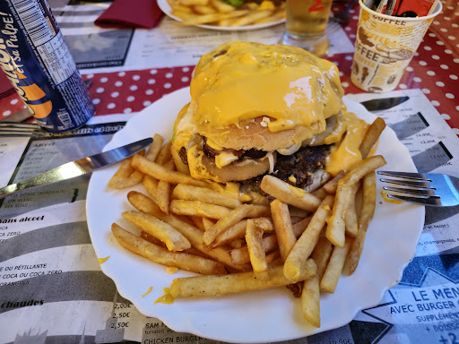Si t’as faim comme un cowboy après une longue chevauchée, t’inquiète pas, Grandpa Sam a ce qu’il faut pour te retaper. Son resto, c’est pas juste un burger joint, c’est un bout d’Amérique, une légende familiale. Dès que tu pousses la porte, BAM ! Big ass drapeaux US, vieilles photos de lui en road trip sur la Route 66, ambiance 100% Stars & Stripes. Manquerait plus que des guns accrochés aux murs et on serait vraiment at home.
