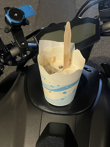 AprĂšs une petite balade quoi de mieux quâune glace ? Surtout que jâhabite Ă 6 minutes en roulant trĂšs modĂ©rĂ©ment. Je me dis allez petit McFlurry devant un film Ă la maison, je suis motard donc forcĂ©ment jâai pris un petit sac isotherme pour la balade avec des boissons fraĂźches et la place pour mettre un sachet que jâaurai fermer soigneusement.