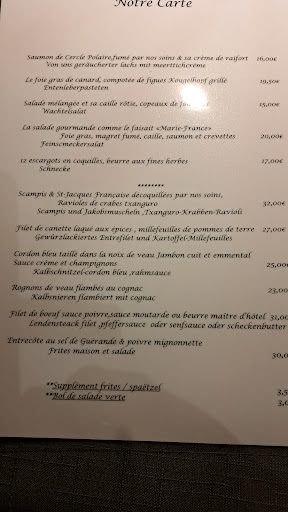 Read moreCe restaurant ne vaut pas le detour : frites maison congelés , gambas dessechees , seule l entrecote etait bonne ..lol La patronne doit changer de metier !!!!tres antipathique elle econduit les clients n ayant pas réservés avec dédain.... Les prix sont trop chers et clairement c est un attrappe touristes pour allemand Bref : ...