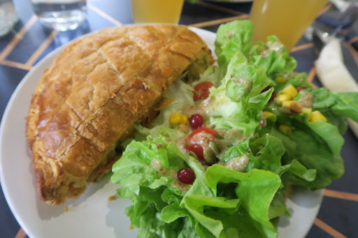 Read moreaccueil très sympathique :) formules repas à prix intéressant ;) terrasse très agréable, au bord d'un cours d'eau, avec vue relaxante sur un petit pont bordé d'arbres. terrasse offrant ombre sous les arbres ou soleil :) avec fontaine, un atmosphère vraiment relaxant :) intérieur très cosy, chaleureux, sièges très confortables :) Pâtisserie artisanale, fait main, des menus possibles Même après 14h :) du moins pour la tourte, spécialité locale, au Saint Nectaire, servie avec sa salade généreuse et délicieuse, une belle surprise :) On y croise de nombreux locaux, souvent gage de qualité ;) Ambiance très chaleureuse dans son ensemble. Bref, on fut très content de trouver ce petit coin de paradis, le personnel y est vraiment sympathique :) et nous servant au-delà des horaires classiques de midi des autres restaus en général. Donc un bon plan pour une pause déjeuner, café ou même manger un menu après 14h ;) encore merci de votre accueil ;) des bretons passant par là, plus que satisfaits de...