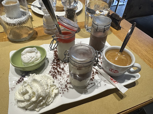 Read moreVisite ce jour ..table en intérieur ..resto climatisé. Cadre cosy propre moderne .. quelques tables un peu serrées Mais place gagné avec l installation d une grande table. Apéritif .. 1 soft mojito + fraise 6,50. Euros Classique RaS 1mojito classique 8,50 Euros pas vraiment alcoolisé. Prenez le soft pour moins cher. Bavette au bleu excellente bonne cuisson Les frites en revanches trop petites et huileuses ..dommage..petit salade ( très petite..et basique. Carottes râpées salade verte 1 petite tranche de pastèque. Pour 24 euros Café Gourmand : Le menu précise 3 desserts une boule de glace ..tartelette Myrtilles Verrine panna cotta abricots crumble myrtilles et la boule de glace a disparue remplacée par un peu de chantilly et un petit coulis de fruits rouges. 9euros ...