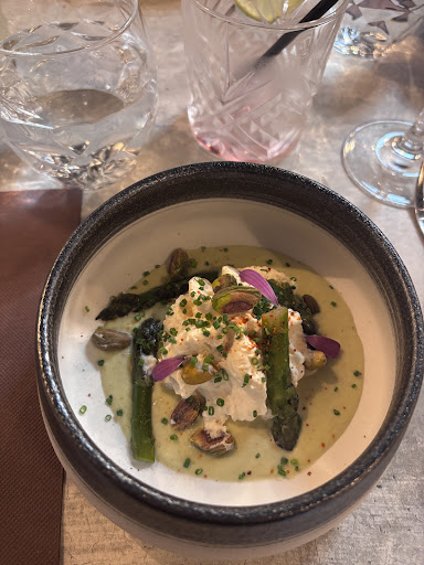 Quelle jolie petite table marquĂ©e du sceau de la jeunesse et dĂ©jĂ stylĂ©e pleine dâambition et dâĂ©lĂ©gance . Le jeune binĂŽme qui pilote la maison et rĂ©gale les convives est admirable de calme et de savoir faire. Le service est fluide prĂ©sent souriant, le jeune chef envoie des amuses bouches en clin dâĆil au terroir auvergnat dĂ©clinant les fromages de lâAuvergne en un crĂ©meux aĂ©rien . Lâasperge est travaillĂ©e en deux tons croquante / veloutĂ© sans jamais sâĂ©loigner de la force de son parfum naturel .( peut ĂȘtre quelques grammes de crĂšme barattĂ©e Ă retirer du dĂ©cor central pour que la prĂ©paration soit parfaite :-) La pistache croustillante trouve sa juste place dans cette dĂ©licieuse entrĂ©e. Nous avons eu le plaisir de dĂ©guster un pluma de porc Ă la cuisson moelleuse. quelques lĂ©gumes de saison parfumĂ©s. Le plat nâest pas simple il est soignĂ© Ă©tudiĂ© et Ă©quilibrĂ© et âŠon le savoure . En dessert nous testons les deux options des compositions autour de la banane et de la poire (poire pochĂ©e) . Mention spĂ©ciale pour le mĂ©lange aromatique trĂšs rĂ©ussi autour de la poire pochĂ©e qui reste ferme et fondante se mariant Ă merveille avec un gingembre savamment dosĂ© et une dĂ©licieuse touche citronnĂ©e (yuzu?) ⊠Quelle charmante table imaginative soignĂ©e pleine de talent :-) on leur souhaite une...