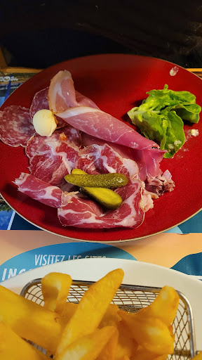 Read moreNous avons ce midi fait notre dernier passage dans cet établissement. Fidèles chaque année depuis plus de 10 ans mais là nous avons été plus que déçu. Le cadre reste magnifique et la décoration de la salle intérieure dépaysante.3 personnes installées sur une table prévue pour 2 encore très humide lorsque nous avons été placé. Les portions ont été plus que réduites versus les mêmes plats les années précédentes, pour exemple de 2 belles tranches de jambon de pays à 1 seule fine tranche et 3 fines de rosette contre 5 tranches généreuses pour un plat à la carte dont le prix n'a pas varié. Moins de 50cm séparés notre table de celles voisines. Une erreur entre le prix de l'apéritif affiché et celui facturé passant de 3 à 4 euros (33% de plus). Une présentation du plat dans le menu à 19€ simpliste que vous pourrez admiré sur la photo jointe. Côté Covid promiscuité des tables moins de 1 mètre d'espace, pas de masque en cuisine, pour le serveur mal positionné (sous le menton puis sous le nez) , table avec un coup de Lavette identique depuis l'ouverture sans changer 'l' eau de rinçage' ni la Lavette. Serveur et serveuse qui s' échangent des réflexions puis se disputent franchement devant...