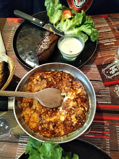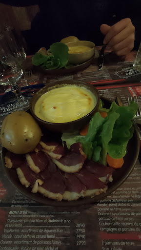 Read moreLa dĂ©coration est typique d'un chalet de montagne. L'accueil Ă©tait sympathique, et le service rapide. Il y a beaucoup de choix sur la carte, c'est bien, mais on s'y perd un peu, le serveur est venu plusieurs fois nous demander si nous avions choisi, mais il fallait du temps pour tout lire. Les accompagnements Ă©tant souvent les mĂȘmes, peut-ĂȘtre serait il bon de simplifier et optimiser la carte, mais ce n'est que mon avis. Nous avons optĂ© pour l'Issoirien, un plat composĂ© d'un fromage local qui Ă©tait trĂšs bon, avec un accompagnement au choix. J'ai choisi canard fumĂ©, trĂšs bien, et mon conjoint, charcuterie. Par contre, il n'y a qu'une une pomme de terre et c'est juste. Je n'ai vu que trop tard (...carte trĂšs chargĂ©e...) la possibilitĂ© de prendre un supplĂ©ment pomme de terre. J'ai donc mangĂ© beaucoup de pain. Dommage car le plat Ă©tait bon. La tarte aux myrtilles Ă©tait succulente. C'est un lieu oĂč il y a beaucoup de tables, c'est serrĂ©, et bruyant. Chacun a des attentes diffĂ©rentes, et personnellement, quant Ă chaque va et vient du service, on m'accroche mon manteau, alors que je suis bien avancĂ©e sur la table ( j'ajoute que je suis un petit gabarit), et que l'on peut suivre la conversation des tables autour, c'est que c'est serrĂ©... Donc lieu oĂč on mange bien avec un...