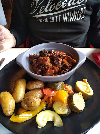 Read moreAllez-y pour boire un verre mais seulement si vous avez du temps devant vous. Nous y sommes allés un midi, nous avons eu deux petits poêlons d’une truffade moyenne pour 7 personnes. Je l’ai signalé à la serveuse (sympathique mais débordée car elles n’étaient que deux pour la salle et l’extérieur) qui m’a dit que c’était bien la quantité normale pour 6 (cherchez l’erreur). Une heure plus tard nous attendions toujours d’être débarrassés pour commander les desserts… mais au vu des autres tables dans la même situation, nous l’avons finalement pris ailleurs. J’ai signalé tout cela au moment de payer mais j’aurai mieux d’aller faire autre chose dans un violon. Bref, c’est un restaurant qui ne cherche pas à fidéliser une clientèle du coin mais plutôt à attraper...