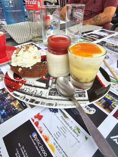 Sortant de l'autoroute pour diner rapidement nous avons eux la surprise de découvrir ce café qui sert une cuisine simple de région (feuilleté aux oeufs et galette de pommes de terres et fromage de chèvre) dans une salade bien sympathique. Accueil tres chaleureux . On sent ici que l'on veut faire plaisir. Nous y avons a nouveau fait une halte au retour pour le midi en terrasse au soleil. A 1000 lieux des aires aseptisé d'autoroute. Coming off the motorway for a quick dinner, we were surprised to discover this café which serves simple regional cuisine (egg puff pastry and potato and goat cheese pancakes) in a very nice salad. Very warm welcome. You can feel that they want to please. We stopped there again on the way back for lunch on the terrace in the sun. A thousand miles from the sanitized motorway service areas....
