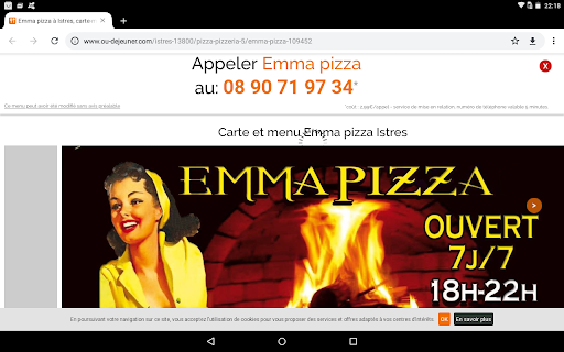 Read moreDu jamais vu :( On dĂ©cide ma femme et moi de se faire une soirĂ©e pizza tranquille. On appelle Emma PIzza (3 appels avant de les avoir) et on commande. Temps d'attente 1h00 Ă 1h30 car ils sont dĂ©bordĂ©s. (sur les nerfs l'interlocutrice...). ok on attendra en buvant l'apĂ©ro 1H45 plus tard toujours rien, on appelle pour savoir ou en est notre commande (5 appels...), L'interlocutrice encore plus stressĂ©e nous dit qu'il y a beaucoup de commandes et que la notre n'Ă©tait prĂ©vue de toute façon que pour 1h..36 plus tard Bref la livraison serait en route. on attend encore 15mns de plus que le maximum prĂ©vu et je dĂ©cide de prĂ©parer Ă manger parce qu'on a vraiment la dalle. Je prĂ©vois de refuser la livraison. je n'aurai mĂȘme pas Ă le faire car....elle n'est jamais arrivĂ©e :( :(...