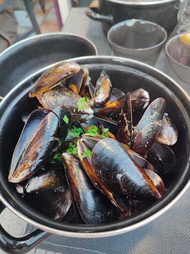 Read moreOn a réservé dans ce restaurant pour manger des moules marinières ! 40minutes d’attente pour avoir notre table pour 2, nous avons eux un verre offert pour patienter sur le trottoir, jusque là ça va !