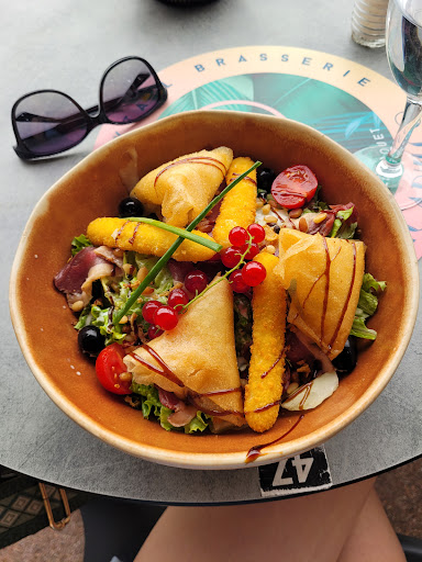On a pris la salade gourmande avec gésier en boîte, et deux bout de pain Harry's couper dans l'assiette et un e rondelle de foie gras. La salade n'avais aucun assaisonnement . Juste jeter dans l'assiette . Ma femme a elle pris une salade type césar ( j'en oublie son appellation ), celle ci était avec une tonne de sauce césar et de poulet panée digne de père dodu. La nourriture est industrielle, et peu savoureuse gustativement.