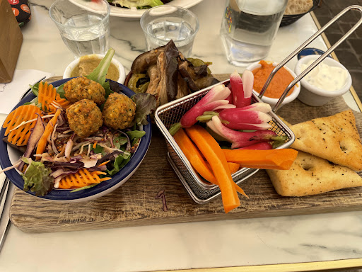 Read moreUne pause repas en terrasse à 13h55 où on pense que le rush est passé…. Un panneau vous demande « d’attendre là » et de ne pas aller en terrasse. Il faut attendre pour être placés… Malheureusement, on nous dit sans ni plus ni moins de convivialité « SVP vous pouvez-vous pousser un peu..!.. » car vraisemblablement nous devions gêner au service des aller retour vers la Cuisine. Nous nous sommes exécutés et avons attendus d’être placés . Une fois installés, nous avons dit au serveur qu’il avait manqué de courtoisie et qu’il avait été un peu trop sec… Vraisemblablement il ne s’en était pas rendu compte et s’est excusé Pour deux plats froids, l attente a été très longue. Puis nous avons dû écourter et prendre un café car même à 15h, le service en terrasse était pratiquement inexistant alors que la plupart des clients qui avaient déjeuné était partis. C’est donc vraiment dommage d’avoir un service de restauration, juste à côté de chaine comme Five Guys ou autre, et de ne pas retrouver un minimum d’attention. Même au Village des Marques où la clientèle afflue sans trop forcer, on est quand même des clients ! À la table d’à côté, un serveur était interpellé, car le café avait été servi sans sucre. Et les deux dames en ont fait la remarque. Il leur a été répondu que « la plupart des gens maintenant, ne prenait plus de sucre avec le café et qu’il fallait le demander si on en voulait ! » Je crois qu’on marche vraiment sur la tête. Est ce particulier à notre région ??? Par contre, une serveuse qui est arrivée a proposé à la table derrière nous, où les clients avaient un petit chien, un bol d’eau pour le rafraîchir. Comme quoi tout tient à la personne qui sert. Pour les deux plats froids, une salade et une planche végétarienne, ils étaient frais, corrects mais un peu gras. Nous tenterons une autre formule de restauration si nous revenons pour faire quelques achats puisqu’aujourd’hui ce sont les journées du patrimoine, et c’est dans ce cadre que nous visitons le Village...