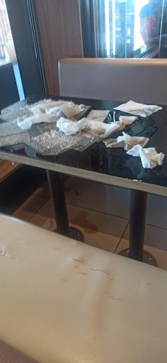 Read moreWouaaah je peux comprendre qu'a l'heure d'affluence les poubelles ne soit pas vidé MAIS la avec 4 clients a l'interieur les poubelle qui débordent , sol ruissellant , table grasse !! Nous prenons 3 menus : La serveuse pour economiser 1 plateaux s'affairent a tout faire rentrer dans 1 seul en manipulant les verres et mettre ses doigts sur les gobelets ( que je lui rappel que je vais tout de meme mettre ma bouche dessus ) les boissons sont inversé ont ne sais pas laquelle est le light , obliger de demander pour qu'ont nous les refasses car je bois sans sucre mais la serveuse me donnes comme solution que nous les goutions nous meme et de nous redonner les verres entre nous pour elle ça as l'air d'etre naturel de boire l'un derriere l'autre malgré le covid qui refait parler de lui (et la serveuse jettes les autres , monde de gaspillage ) pour les glaces une seule cuillère pour trois, alors je vais en redemandé au comptoir et la , la serveuse malgré qu'elle les ai prise par le manche met ses mains sur les embouts des cuilleres , pourquoi ?? Je lui fait donc la reflextion et madame n'est pas contente , elle as les mains propres paraitrait-il Pour moi unique et seul fois de mon experience chez eux , vraiment a fuir pour le manque...