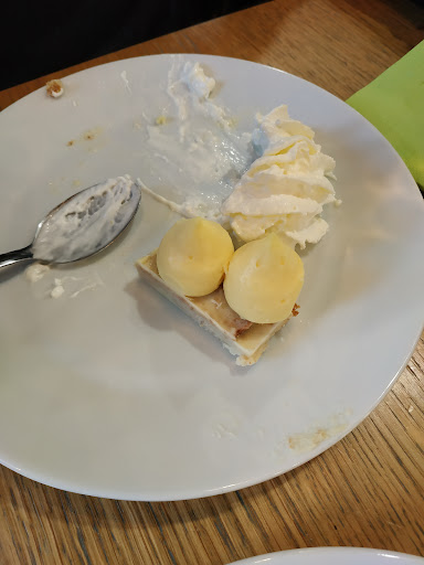 Read moreFoutage de g... A part les photos, la pub alléchante et les bons commentaires laissés sans doute par des potes, vous vu retrouverez dans le typique resto d'arnaque à touristes de passage . Attente interminable, plats minuscules pour le prix (18euros les 4 petites portions de saumon soit disant mi cuit mais en fait archi cuit avec 4 brocolis vapeur sans saveur). Dessert minuscule immangeable avec la cuillère (trop dur) et goût industriel. Bref même les tables d'à côté étaient dégoutées. Et en plus c est pas donné ! Bref, courage fuyons !