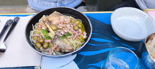 Read moreDommage pour moi, c'Ă©tait peut-ĂȘtre pas le bon jour ni le bon choix... : le temps d'attente pour 2 Ă©tait trĂšs trĂšs long sans explication... il nous est spĂ©cifiĂ© lors de la prise de commande qu'il n'y avait pas au menu du jour les ravioles ouvertes d'effilochĂ© alors que ce plat a Ă©tĂ© servi Ă des clients arrivĂ©s bien plus tard... la blanquette de veau " "trempait" dans un liquide blanchĂątre insipide et ainsi que le riz qu'il aurait fallu manger Ă la cuillĂšre, le tout accompagnĂ© de trĂšs peu de lĂ©gumes champignons et carottes)... Ă l'intĂ©rieur, il faut aussi savoir que les tables sont serrĂ©es et que les conversations sont partagĂ©es... Dommage la 1Ăšre fois nous avions apprĂ©ciĂ© la soupe au pistou Ă l'extĂ©rieur...