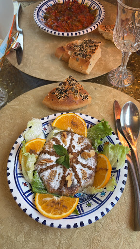 Depuis le temps que je voulais tester ce restaurant... C'est chose faite ! Et pour le moins que l'on puisse dire : je ne boude pas mon plaisir ! Cadre soyeux et enveloppant, Escale à Marrakech est tout ce que l'on peut désirer d'un restaurant oriental typique. Un tourbillon de saveurs, mis en valeur et réhaussés par des douces notes d'amandes, de cannelle, d'épices. Partons à Marrakech et offrons nous un dépaysement total... J'ai été ravie et comblée de pouvoir partager ce restaurant avec ma sœur. Endroit propre et très vivant ! Le cadre est élégant sans être prétentieux, on s’y sent vraiment bien. J'ai eu l'occasion d'y aller et l'accueil de Nabilla avec son époux a été exceptionnelle. Tellement gentille, accueillante. On y ressent tellement d'amour et de bienveillance. Le personnel est au petit soin, très appréciable. On y entre par curiosité, par surprise, et tout le long jusqu'à la fin, on y ressort avec le sourire. Comment ne pas être charmée par cette prestation ? Cette impression d'être reçue comme un « membre de la famille » et d'avoir une mère qui nous livre sa passion culinaire sans chichi. Nabilla, femme au grand cœur s'engage à nous faire vivre une expérience gustative de haut niveau. Le restaurant est assez intimiste, le service rapide et l'exécution choc. J'ai pris une Tchakouka avec un thé et des pâtisseries orientales et quel régal ! Poivrons, Aubergines, légumes frais et des pâtisseries orientales exquises. Pas trop sucré. Un enchantement pour les papilles qui retrouvent leurs empire. Le Maroc transpire de douceurs suaves et chaudes. On ne peut pas être indifférent quant à cette magnifique cuisine méditérannéene et oriental qui honore le pays africain. Riche, sublime, hospitalité. Messieurs, Dames : il est temps de vous régaler et de vous laisser séduire par le Maroc. Prenez ce temps pour vous octroyer une pause et embarquer en première classe avec Nabilla. Petit plus : Etant malade, j'ai mangé sans risque avec mes problèmes de colon car Nabilla a pris en compte ma demande pour s'adapter à mon régime alimentaire. Soucieuse du bien-être client. Un endroit à fréquenter sans...modération. Au plaisir de revenir très vite pour prendre des forces et tout dévorer ! Je n'en laisserai pas une miette et mes petites sorcières aussi! Mes...