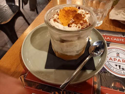 Read moreWe've been going to L'Aparté for about 4 years now, and we are delighted every time. The menu changes a couple of times a year, and always features at least one - and usually two - vegetarian options. Their burgers are big and juicy, their Alsatian "pizzas" (Flammekeuche) are delicious. There is a limited wine list that features wines that go very well with the food menu. Lots of beers and other drinks from the bar. We often go as a group after a hike or a ramble, and sit in a separate dining area. Our well-behaved dogs are welcome. Service is always good...
