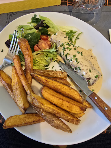Well, it is not a fast food and they have normal meals, what is great. No one there speaks other language but french. The meal was good, I just do not like when a meal is prepared the way you can feel the flagrance of the live animal, if you know what I mean. So I had something from pork and I felt a suble tone of what you can smell around pig barns. My choice of food was just not...